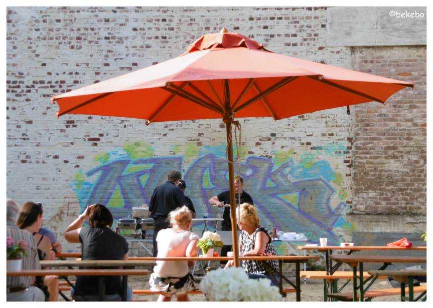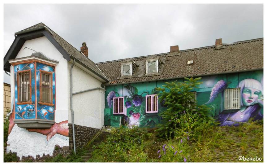 Zum Abschluß wurde dann an der Uerdinger Kaffeerösterei Beans&Sweets aus einer verschmierten und verunstalteten Wand an der Seilbahn mit einem schönen Motiv auch Kunst geschaffen.