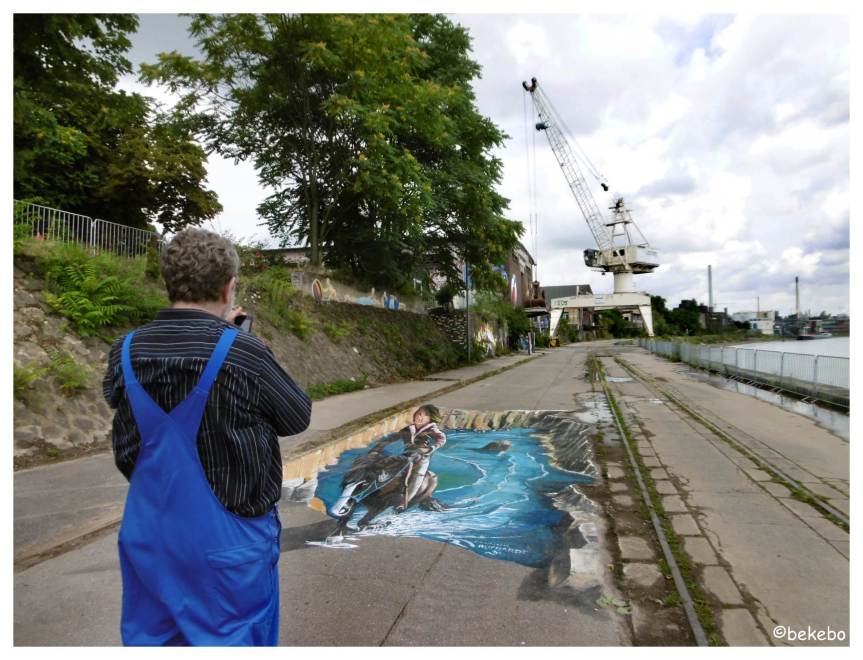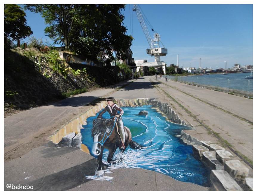 Bei einigen künstlerischen Arbeiten gab es „Markierungspunkte“, die den besten Blick auf wunderbare Bilder zeigte. Für mich die schönste Arbeit war das Pferd, das aus dem Wasser stieg. Einfach genial!