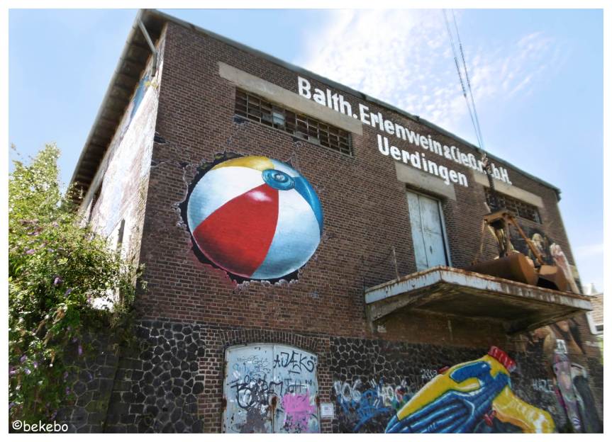 Im Frühsommer haben wir uns schon an dem angesagten Gelände umgeschaut und die Veränderungen waren mehr als spannend! Ganz besonders, als Frederike Wouters mit den anderen, angereisten Künstler am Zollhof in Uerdingen mit ihren künstlerischen Arbeiten begannen. Sechszehn Kreative verwandelten vor Ort das Gelände in eine großartige Freiluftgalerie, wobei die Flächen, die verzaubert werden sollten, frei wählbar waren.