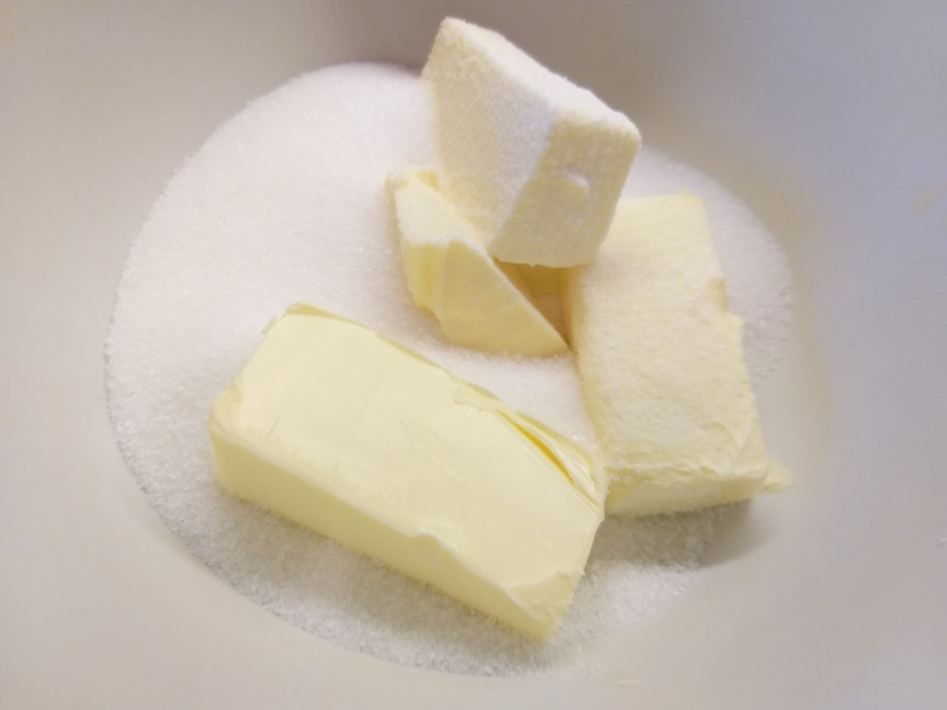 Als nächstes macht ihr die Streusel. Vermischt zuerst die Butter, den Zucker und den Vanillezucker.