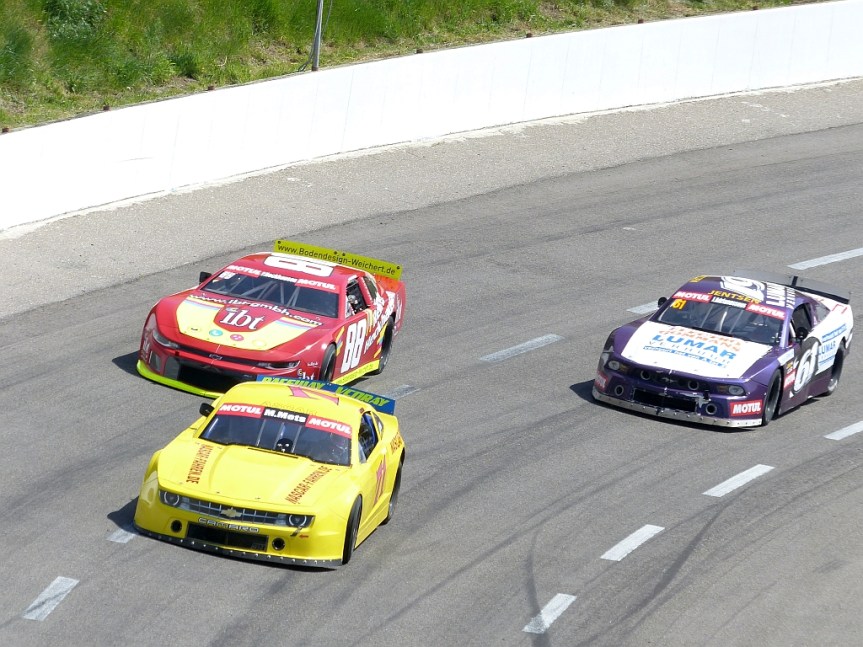 Am Ostermontag fand auf dem Oval in Venray also der zweite Renntag der Saison statt. Wie immer gibt es an diesen Tagen eine Menge Rennsport zu sehen, man muss halt das Oval mögen. Die LMV8 waren drei Mal dran, zusätzlich gab es noch zwei freie Trainings zu sehen. Apropos zu sehen, gestern gab es auch zum ersten Mal die Möglichkeit das neue Camaro-Body und vor allem das neue Design zu sehen. Ich finde es ziemlich spektakulär, das macht wirklich was her. Auch im Pulk während des Rennes fällt der Wagen, nicht zuletzt durch die Neonapplikationen, richtig auf.