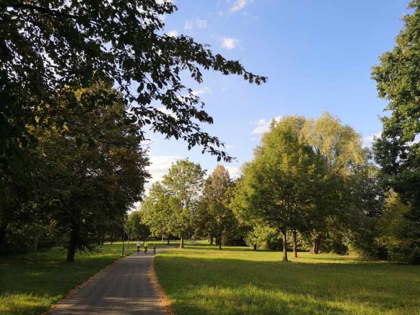 Auf dem Nerenbroicker Weg geht es dann straight zurück nach Krefeld Mitte. Man radelt durch Parkanlagen neben der Linie U76 entlang, wirklich schön angelegt und man spart sich das Radeln über die Kölner Straße mit ihren vielen Autos und den Schienen in der Mitte.
