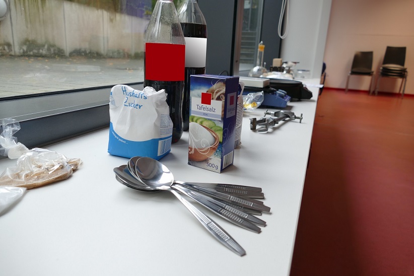 Nachdem wir die trotz Schüsseln entstandene Sauerei beseitigt hatten, widmeten wir uns wieder ein paar Fakten zum Thema Zuckerkonsum. Laut Herrn Popovic nehme eine Person pro Jahr im Durchschnitt 33 Kilogramm Zucker zu sich. Ganz schön viel!