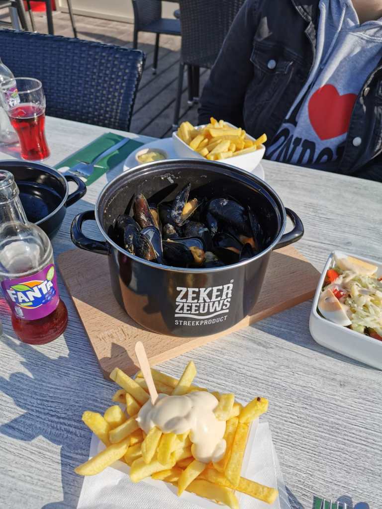 Am Marktplatz fanden wir eine schön dekorierte Sitzecke, die zum Restaurant-Teil der Eisdiele gehörte, die Jule schon oft sehr gelobt hatte. Unsere Erwartungen waren also hoch. Als die Karte kam liebäugelten wir erst noch mit den Muscheln. Da wir diese ja aber schon am Vortag am Strand gegessen hatten, entschieden wir uns letztlich doch für den ursprünglich geplanten Kibbeling. Ein Fehler.