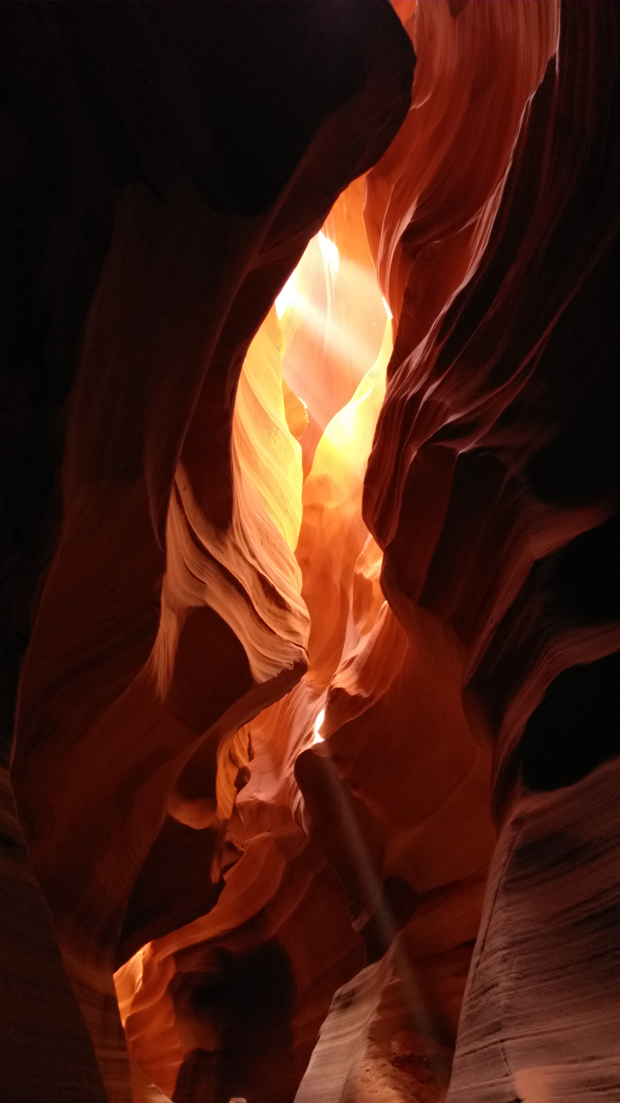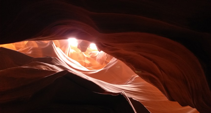 Nachdem wir den Rest des Tages dann im Hotel haben ausklingen lassen (es gab glücklicherweise wieder einen Pool – diesmal sogar draußen – und ein fantastisches Restaurant) ging es am nächsten Morgen schon früh los. Wir hatten eine Tour durch den Antelope Canyon gebucht. Den erkennen viele von euch vielleicht gleich als gern genutztes Cover von Collegeblöcken 😉