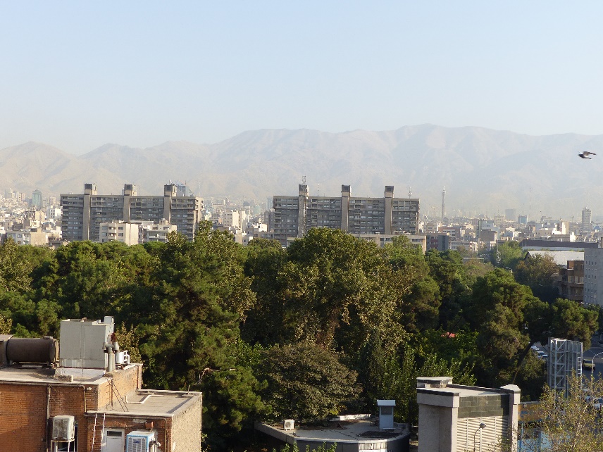 Teheran mit seinen ca. 16 Millionen Einwohnern leidet unter starker Luftverschmutzung, was durch die geografische Lage am Fuß des Elburs-Gebirges noch begünstigt wird. Es gibt keinen TÜV und das was an Autos umherfährt, hat meist das Haltbarkeitsdatum um Jahrzehnte überschritten. Auch dies ist eine Folge der verhängten Embargos. Auf jeden Fall macht es jede Taxifahrt zum Abenteuer und wer schon einmal in einem Trabant gesessen hat, kann sich ungefähr vorstellen, wie sich das anfühlt. Der Verkehr ist in jeder größeren iranischen Stadt ziemlich abenteuerlich und die Rate der Verkehrstoten demgemäß hoch.