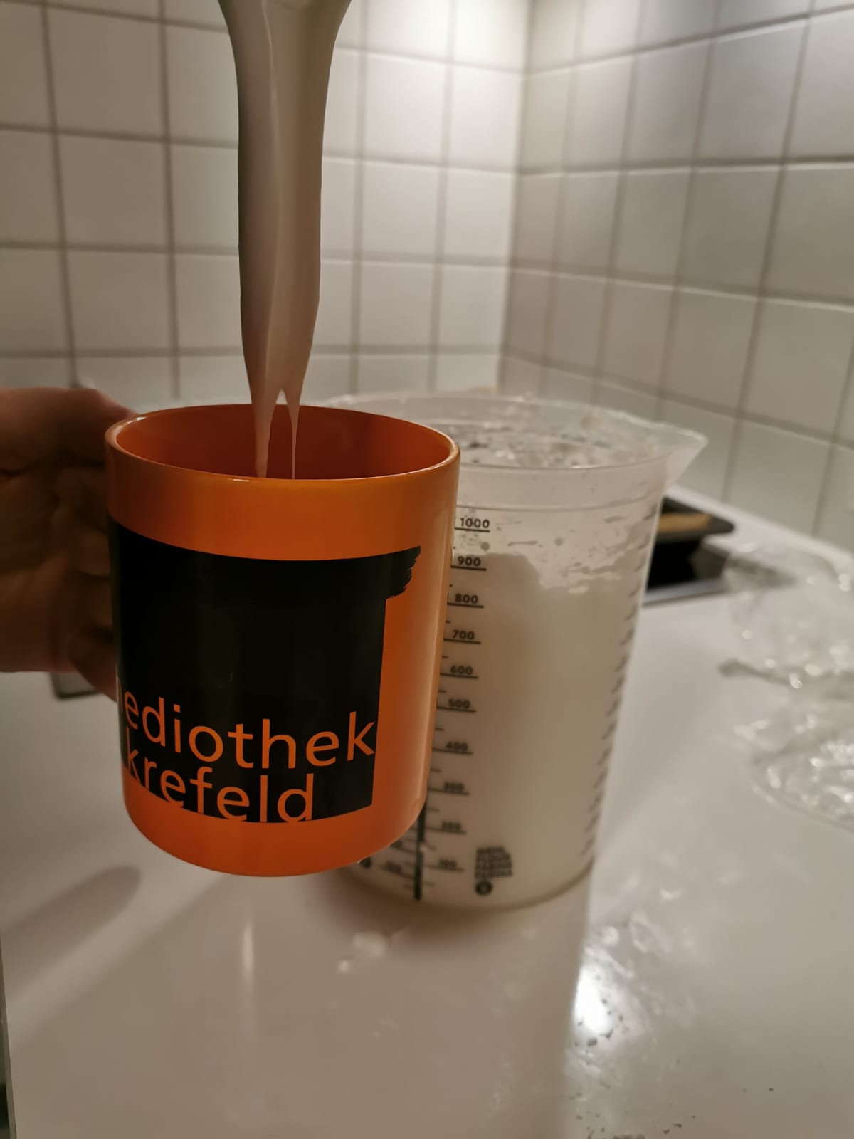 Davon stellt ihr dann eine halbe Tasse (Vielleicht sogar auch so ein schönes Exemplar aus der Mediothek? 😏) beiseite, um damit später die Zimtsterne zu bestreichen.