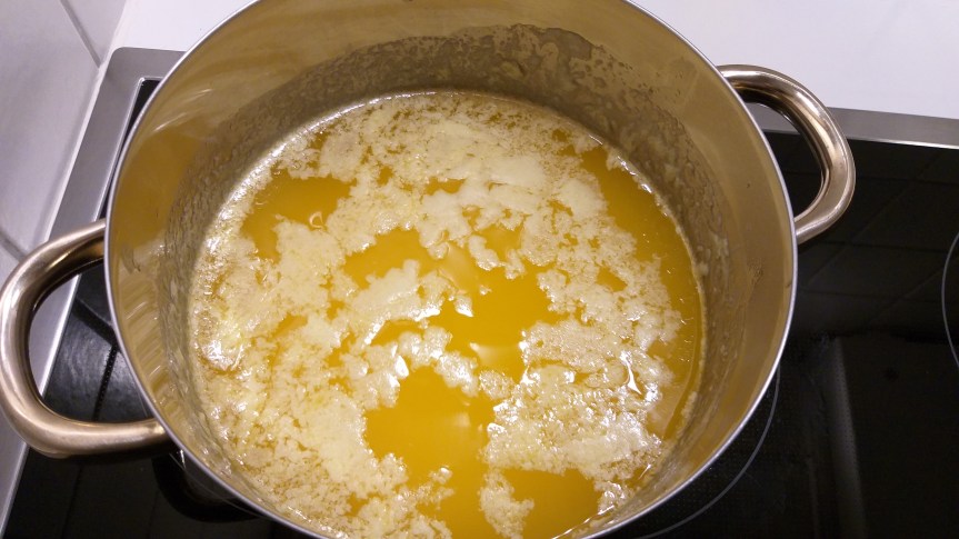 Für die maximale Buttrigkeit der Plätzchen und den besonders karamelligen Geschmack, müsst ihr als allererstes die Butter im Topf schmelzen. Bevor ihr mit den restlichen Schritten weitermachen könnt, muss die Butter komplett abkühlen.
