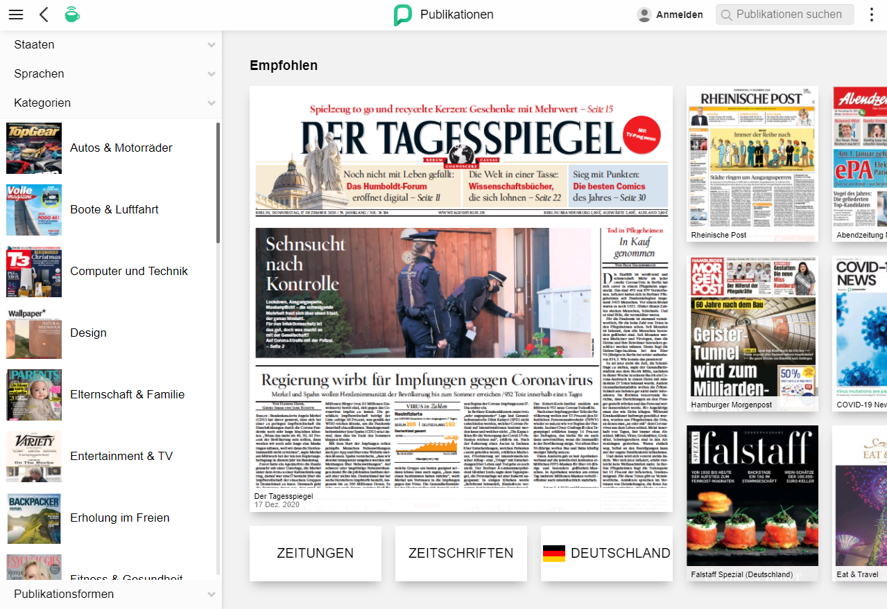 Der PressReader ist ein Dienst, den man entweder über unsere Website oder die gleichnamige App findet. Dort kann man sich – vorausgesetzt man hat einen gültigen Mediotheksausweis – durch über 6.000 Zeitungen und Zeitschriften in verschiedenen Sprachen wühlen.