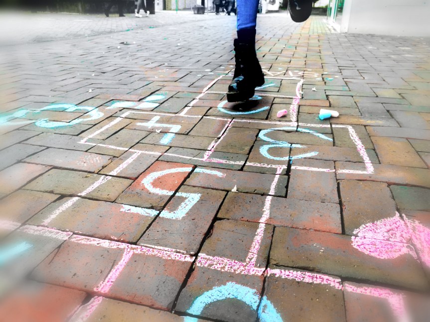 Dafür braucht ihr nicht mehr als einen Stein, ein Stück Kreide und Boden, den ihr mit ihr bemalen dürft.