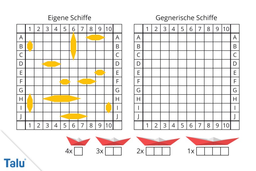 Vorher wird bestimmt wie viele Schiffe welcher Größe jeder Spieler einzeichnet, dann geht es los!