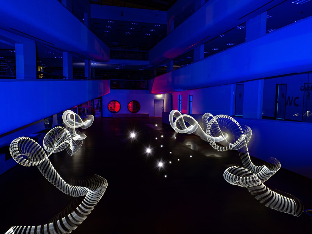 Uns hat besonders gefreut, wie viel Spaß die Teilnehmer*innen bei der Veranstaltung hatten. Gerade nach so langer Zeit, in der Veranstaltungen kaum möglich waren, waren wir froh, dass dieser Workshop stattfinden konnte. Die Teilnehmer*innen waren alle mit eigener Kamera und Stativ ausgestattet und haben echt kreative Fotos von der Treppe vor dem Atrium aus gemacht.